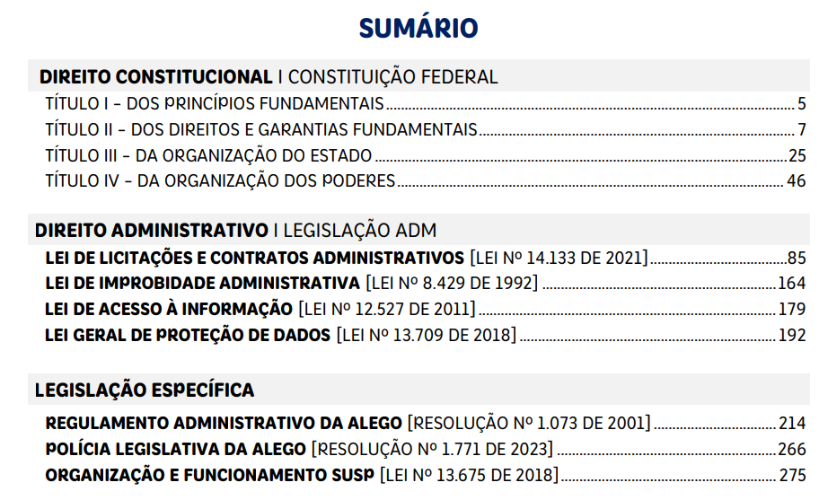 SUMÁRIO DO VADEMECUM PL ALEGO