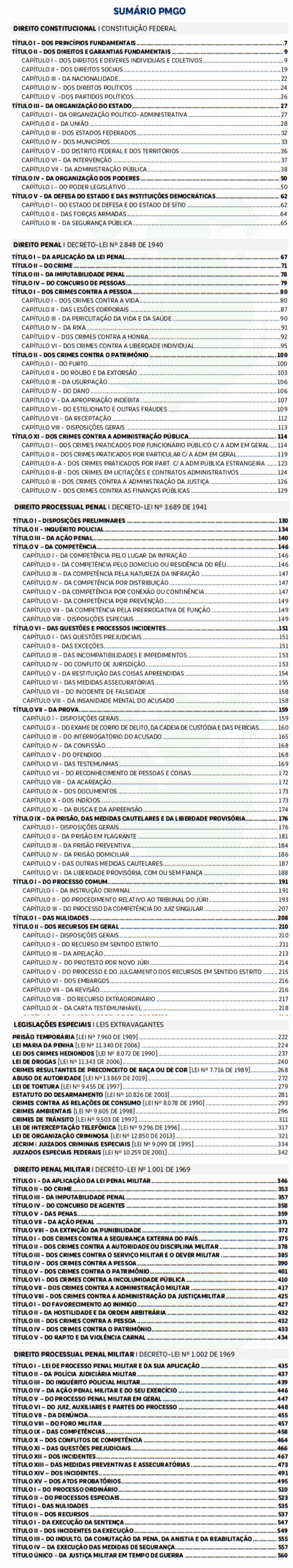 SUMÁRIO DO VADEMECUM PMGO